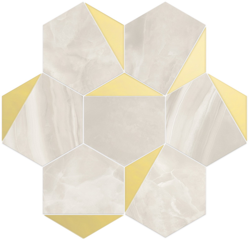 Керамогранит Vallelunga & Co. Нолита Есагона Трианголи Оро Луссо / Nolita Esagona Triangoli Oro Lusso глянцевый бежевый CV6001117S 30х28 см