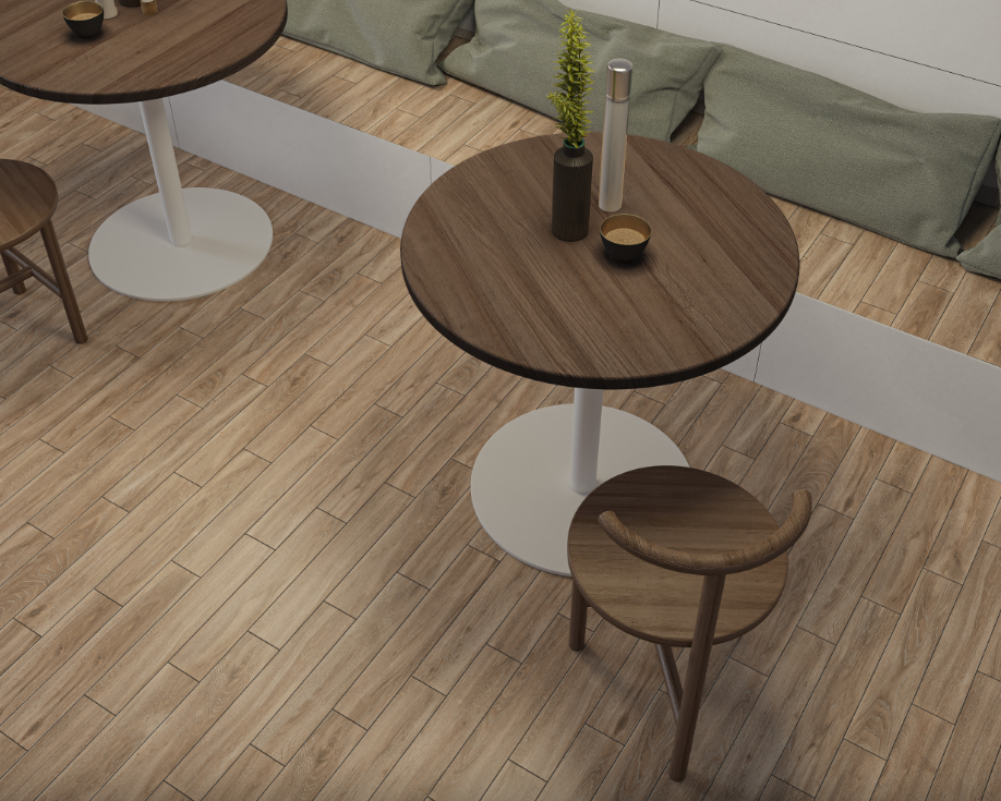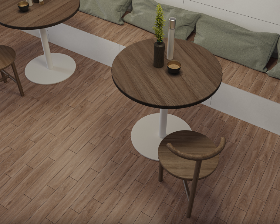 Коллекция с рисунком под дерево — это отличный выбор для дизайна и отделки помещений. Зарубежный материал от знаменитой Испанской фабрики, на 100% имитирует древесину. Плита в точности повторяет окрас и текстуру натурального материала, так же создавая атмосферу тепла и уюта. Керамогранит коллекции будет невероятно практичным и долговечным материалом.