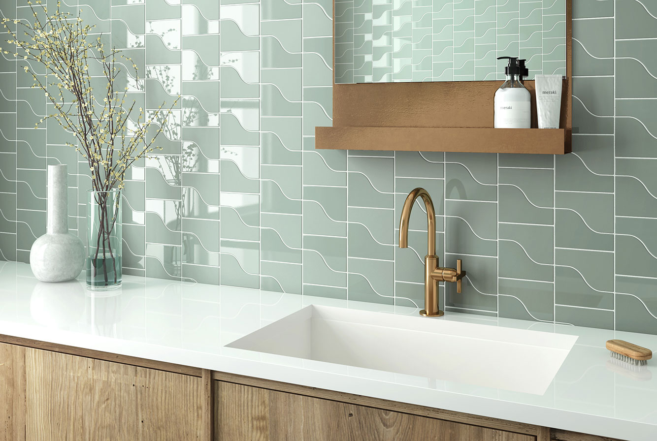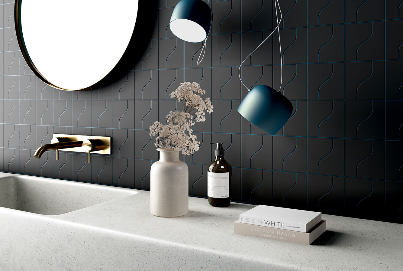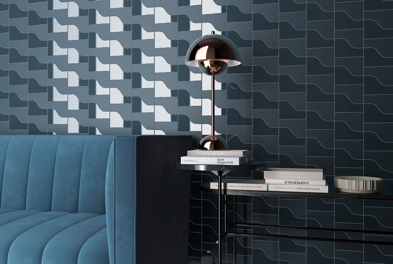 EQUIPE CURVE / ЭКИПЕ КЁРВ — коллекция модульной керамической плитки компактного размера 8,3x12 см. Оригинальная форма плитки CURVE предлагает бесконечную игру прямых и изогнутых линий.