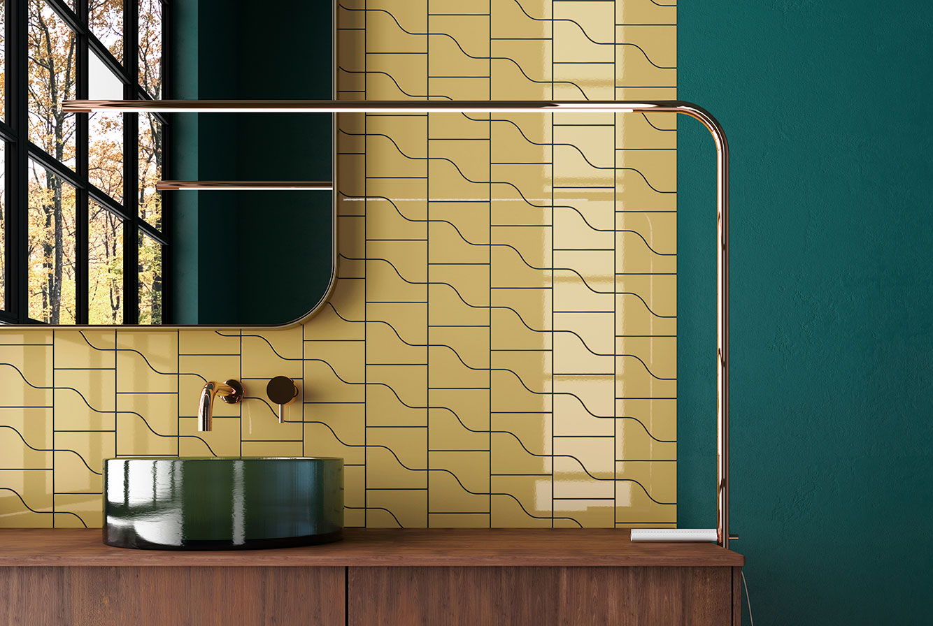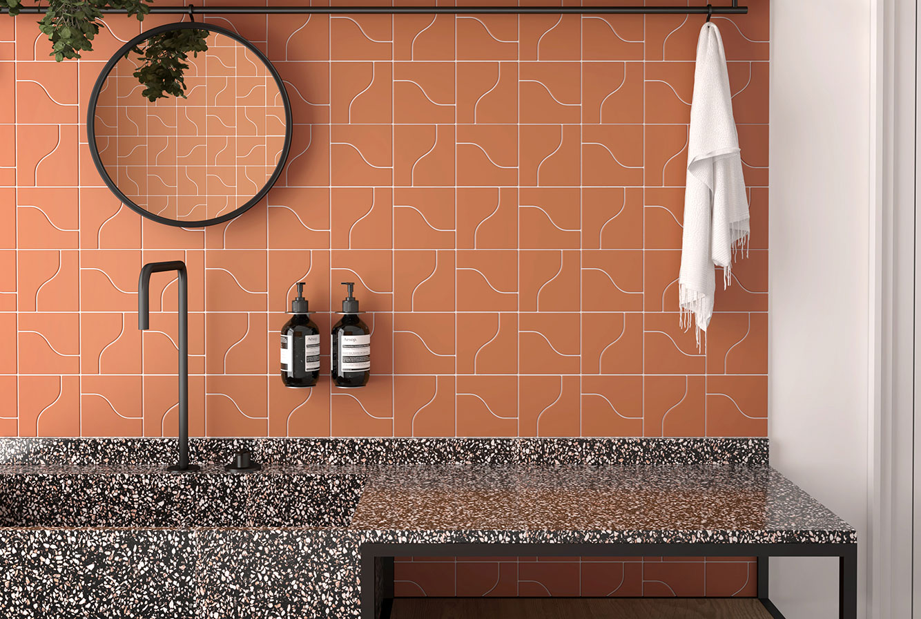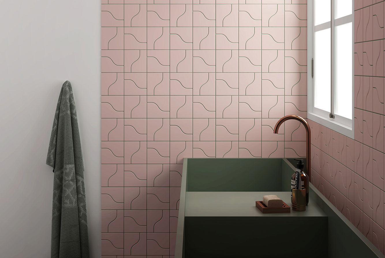 EQUIPE CURVE / ЭКИПЕ КЁРВ — коллекция модульной керамической плитки компактного размера 8,3x12 см. Оригинальная форма плитки CURVE предлагает бесконечную игру прямых и изогнутых линий.