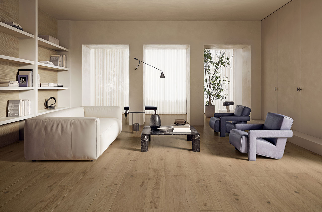 Коллекция представляет собой встречу между вечным шармом дерева и прочностью керамогранита.