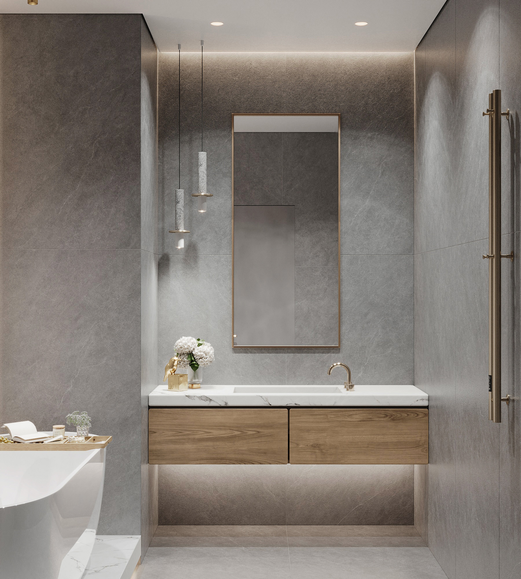 Главное преимущество этой коллекции — универсальность. Керамогранит прекрасно сочетается с различными фактурами: теплом натурального дерева, прохладой металла, мягкостью текстиля. При этом он сохраняет все практические преимущества современного покрытия: устойчивость к влаге, простоту ухода и долговечность.