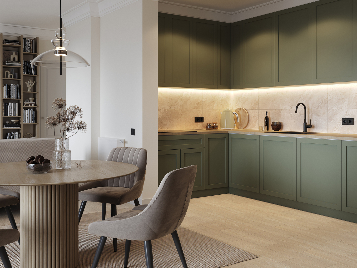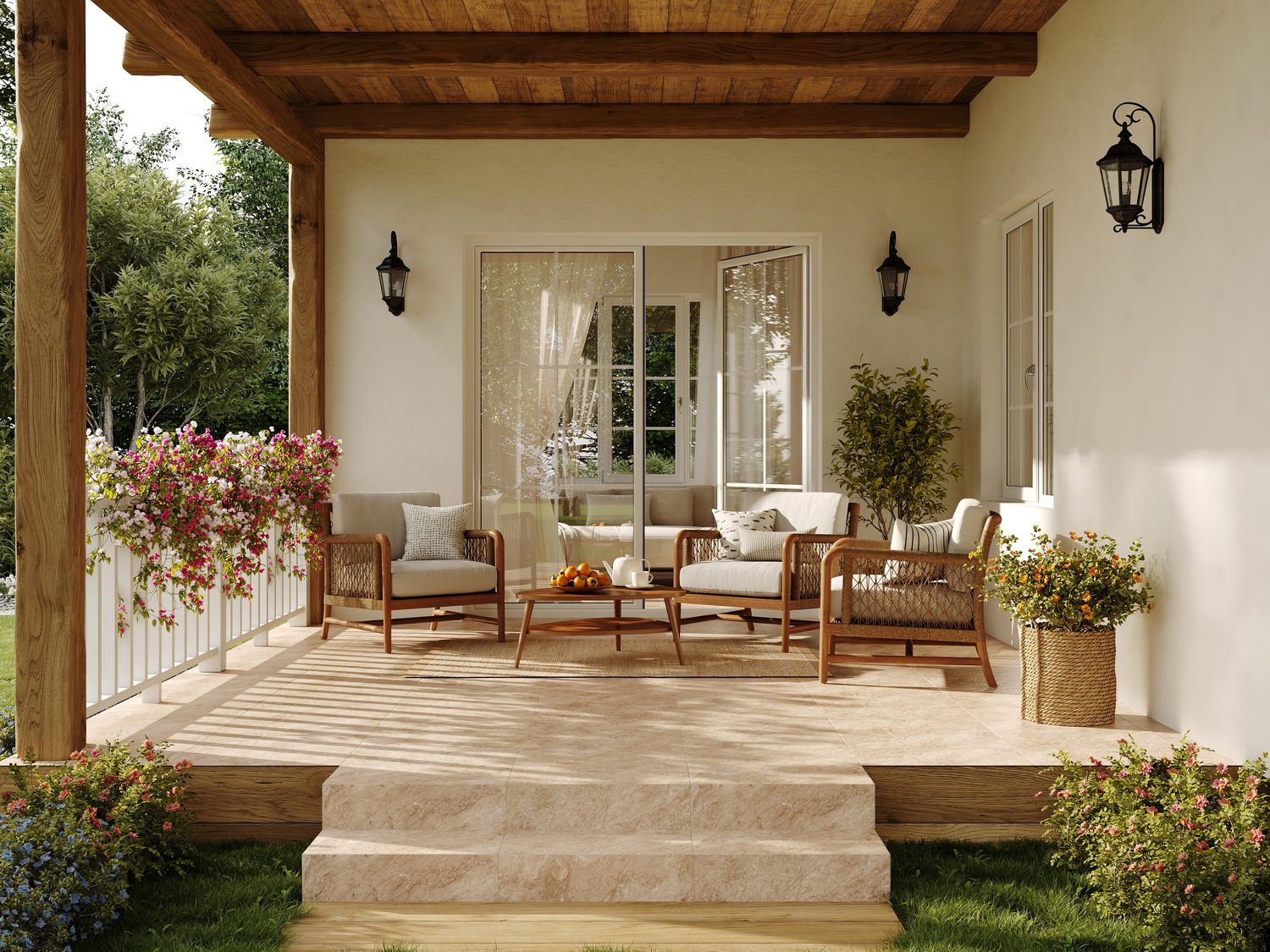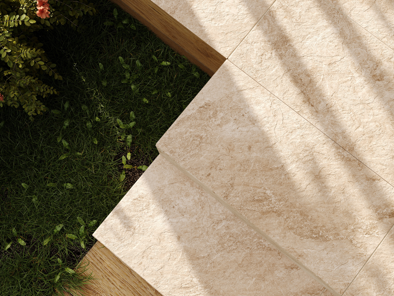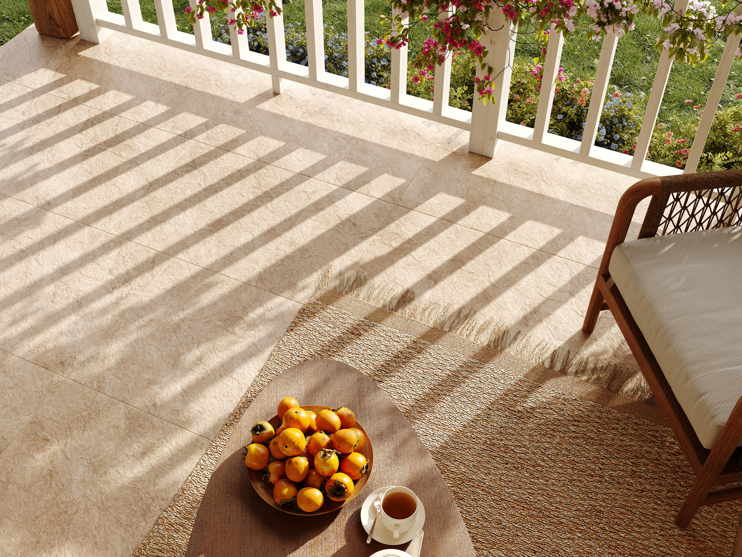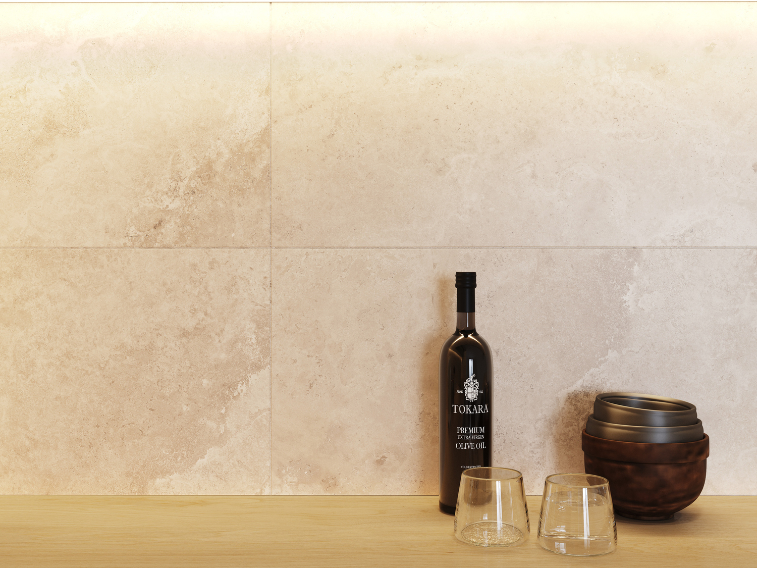 Красоту бежевого камня раскрывает керамогранит Luna. Его кружевной узор, лёгкий и изящный, придает интерьеру воздушность.