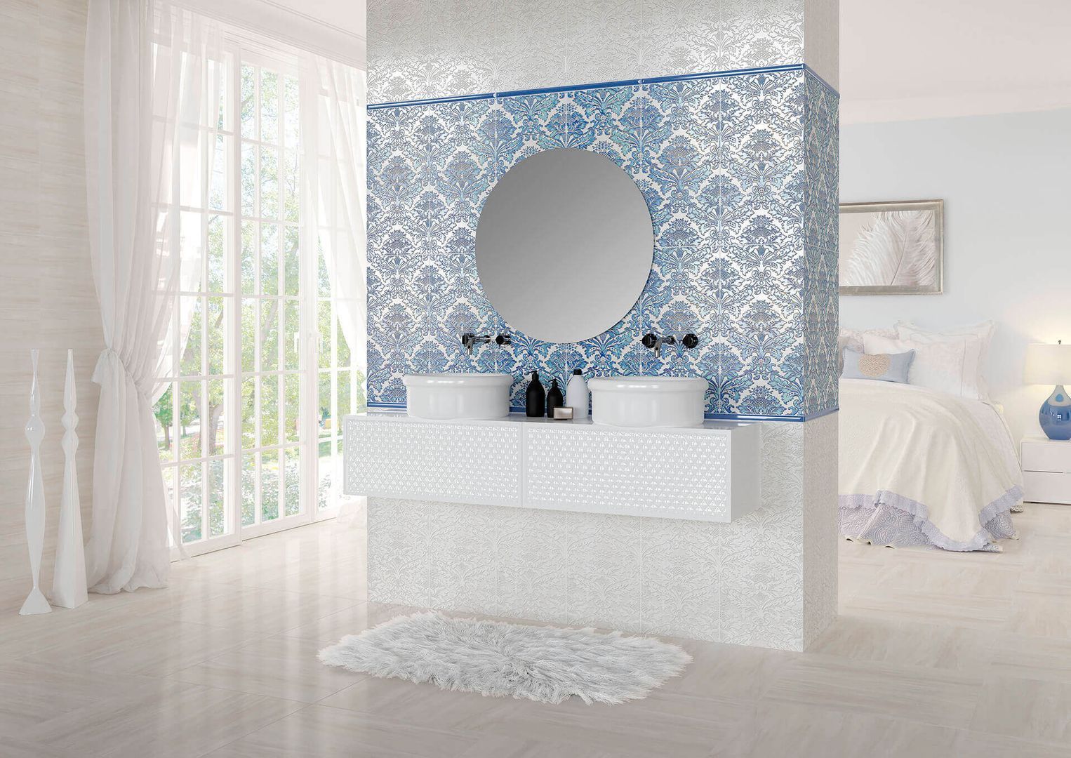 Люксус поможет создать изысканный и богатый дизайн в любом из помещений вашего дома. При создании линейки мастерами применялись самые современные технологии для обеспечения качества продукции. Настенная плитка имитирует мраморное покрытие. Вставки из светло-бежевых, синих, золотистых тонов привлекают внимание, вносят в общее пространство спокойствие и уравновешенность. Компания Мей в рамках этой коллекции уделила много внимания декоративным элементам. Здесь удивительно тонко вплетаются аккуратные орнаменты, а геометрия линий с приятным цветовым сочетанием только подчеркивает особый стиль изготовителя этой продукции.