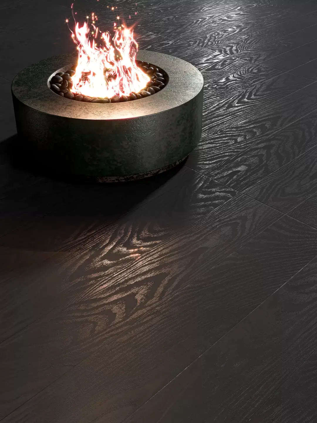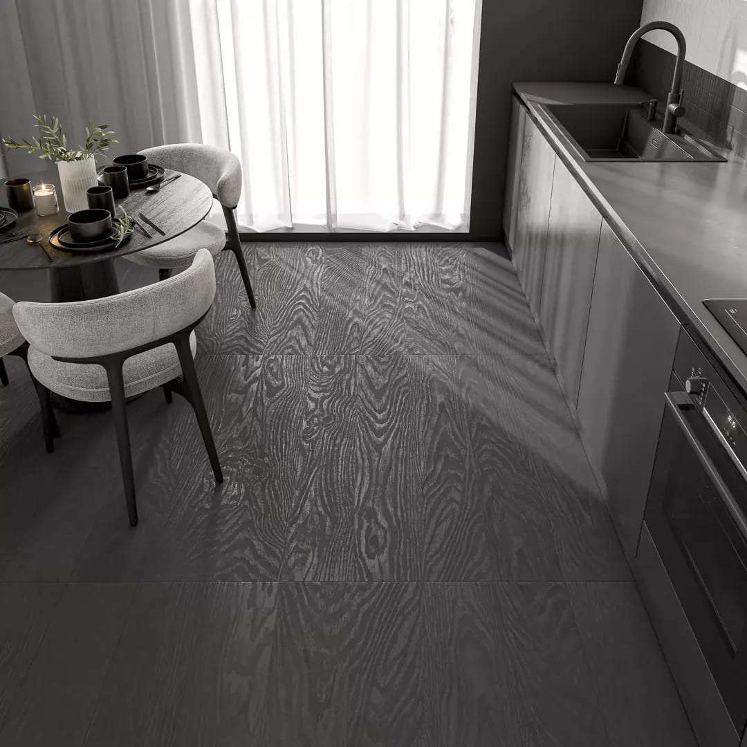 Керамогранит «Манифик Вуд» с рисунком дерева соединяет эстетику натурального материала с прочностью и долговечностью, свойственными керамическому граниту. Графика древесного среза в этой серии выполнена в виде причудливых линий, которые переливаются на свету, усиливая реалистичность текстуры. Блестящий узор обладает естественной, слегка шероховатой поверхностью: в таком прочтении керамическое дерево выглядит традиционно — и в то же время неординарно.