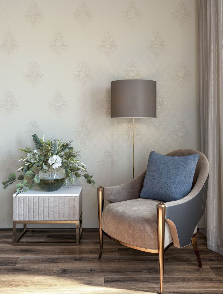 Металлизированный декор подчеркивает роскошь дамаска