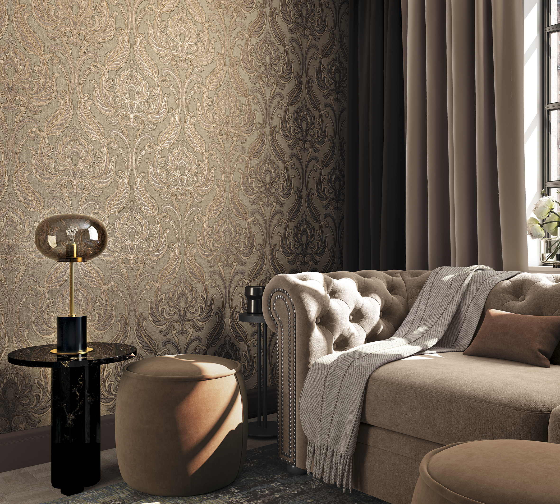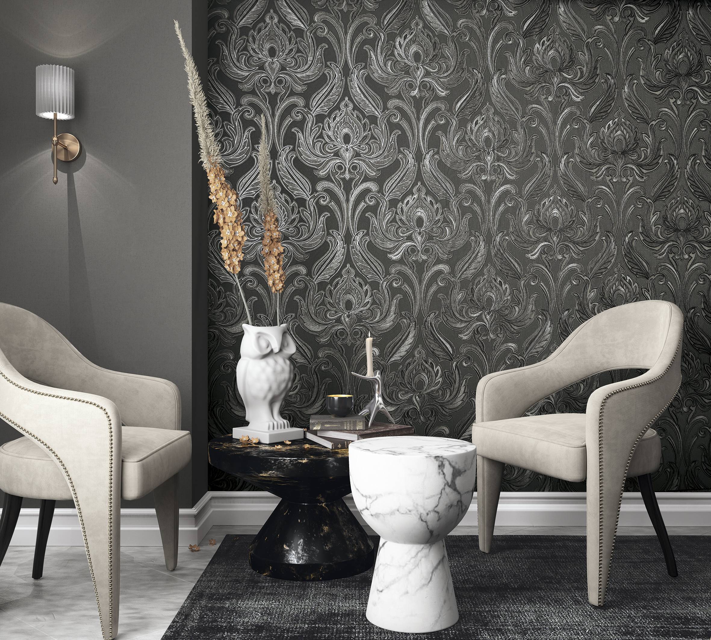 - Узор дамаск, однотонные, флористика, штукатурка, имитация, ткань