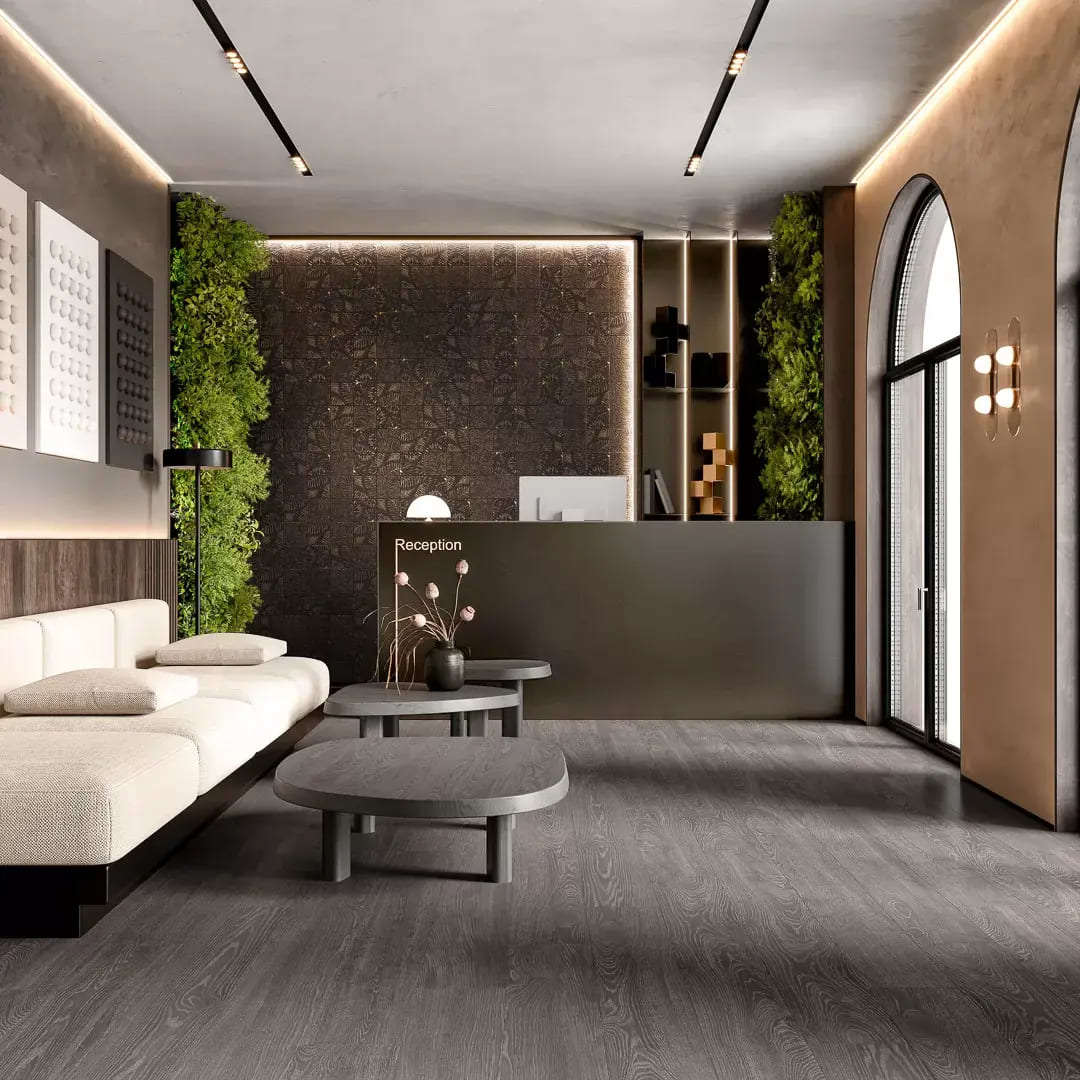 Благодаря удлинённому формату 20×160, керамогранит хорошо подходит и для отделки стен. Плиты обрезного формата можно укладывать с минимальным швом в 2 мм, что обеспечивает эстетичный вид покрытия и расширяет возможности применения материала в частных и общественных пространствах.