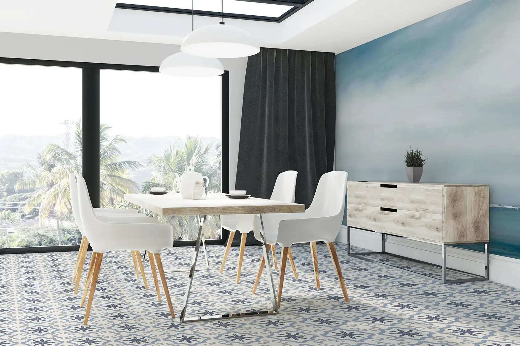 В ванной комнате керамогранит Menorca создаст атмосферу расслабления и комфорта, превращая ее в место для уединенных моментов и заботы о себе.Интересные узоры будут способствовать созданию спокойной и гармоничной атмосферы. В кухне этот керамогранит добавит свежести и придаст ей особый шарм средиземноморского стиля.
