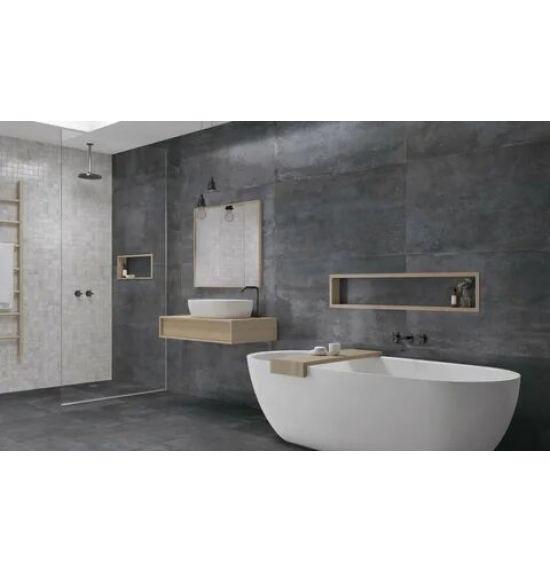 Коллекция METALLIC от фабрики Seratonia (Индия) очень точно воспроизводит покрытие, стилизованное под металл с неоднородной, живой окраской и сложными цветовыми переходами. Этот керамогранит обладает необычным и завораживающим визуальным эффектом благодаря искусно переданным хроматическим вариациям металлической поверхности. Благодаря неординарности рисунка, облицовка плитами этой серии придаст интерьеру неповторимый и запоминающийся внешний вид. Керамогранит выполнен в крупном формате 60х120 см в темных и светлых с матовой поверхностью, которая обладает высокими противоскользящими свойствами. Покрытие смотрится реалистично и привлекательно, оно хорошо подходит для отделки пола и стен разных помещений: гостиных, кухонь, ванных комнат, прихожих, холлов и любых других помещений, оформленных в таких стилях, как минимализм, лофт, индастриал.