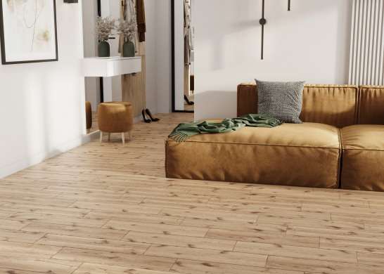 Классическая напольная плитка под дерево "Милан". Матовая поверхность плитки оптимально подходит для пола, не скользит, неприхотлива в уходе. Может быть также использована для декорирования стен в модном сейчас эко-стиле. Отлично подойдет для интерьеров с втиле лофт. Максимально передает текстуру и мельчайшие детали натурального дерева.