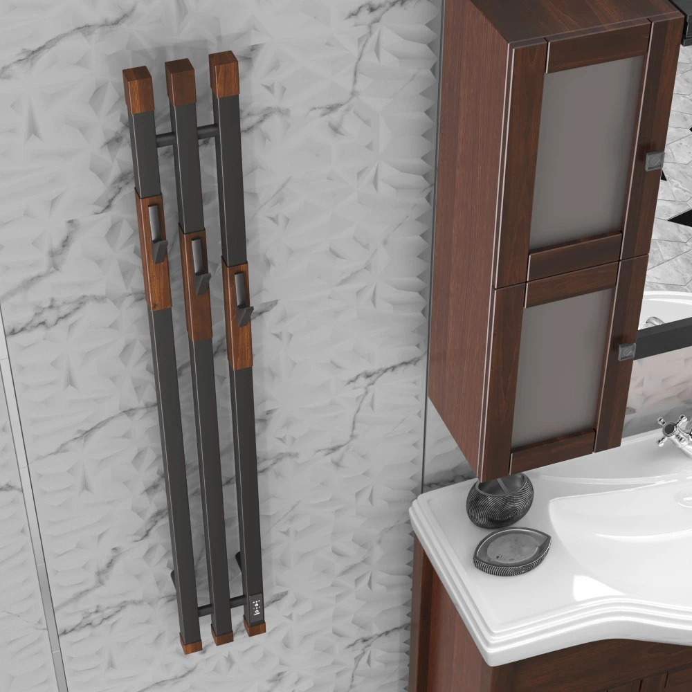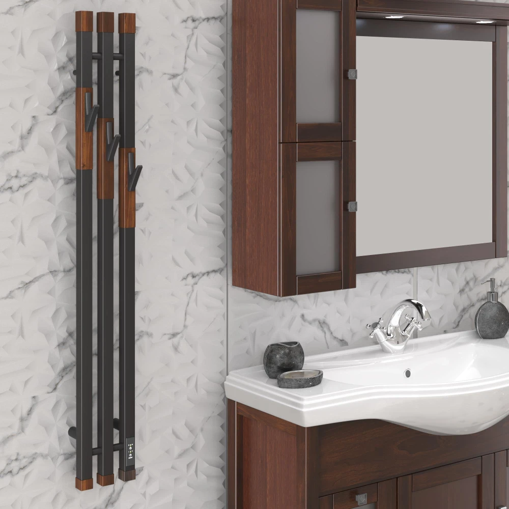 • Цвет полотенцесушителя черный матовый светлый орех