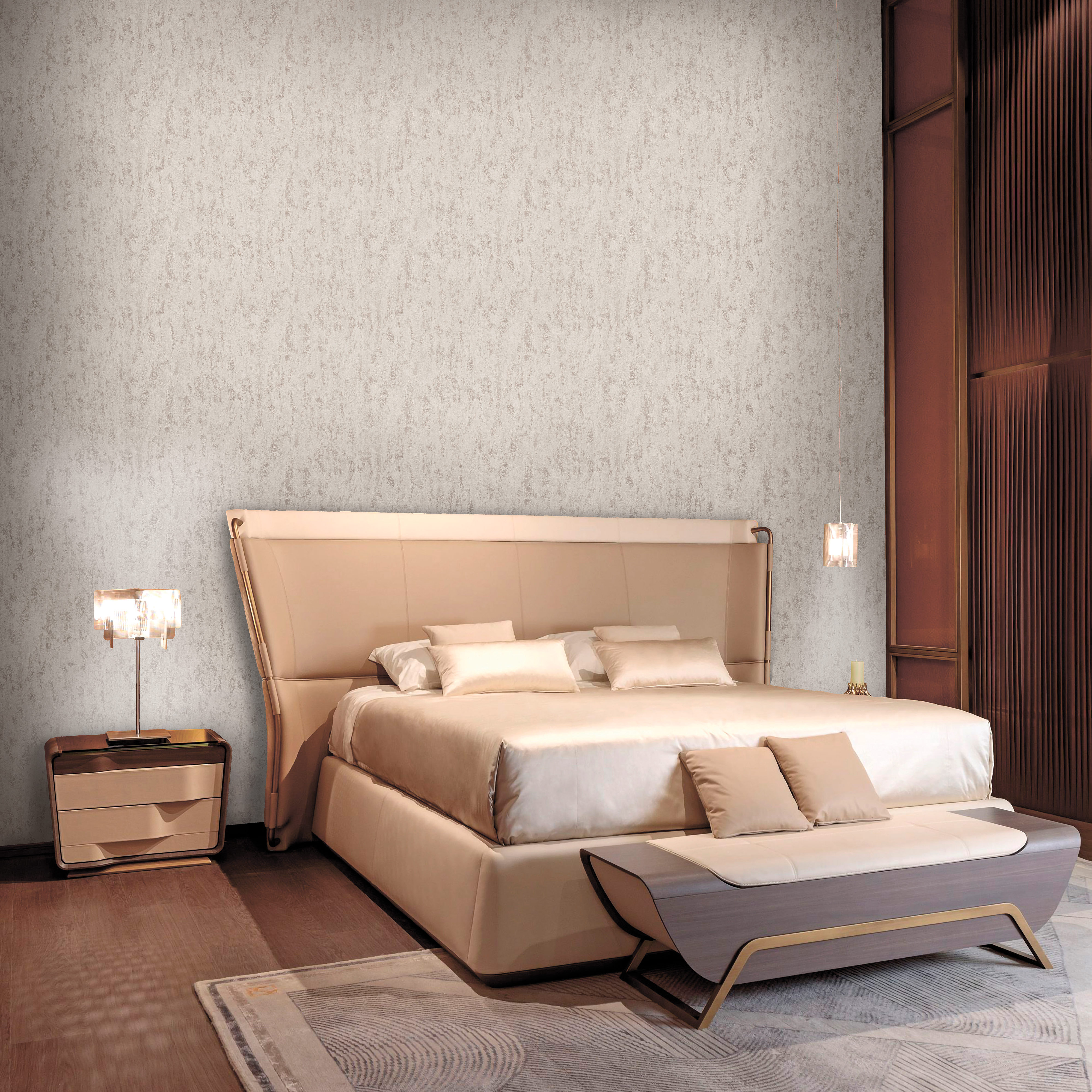 Благородная фактура в спокойных приглушённых тонах. Два её варианта — полностью матовый и с деликатными отблесками — позволяют выбрать нужное настроение. Матовая поверхность подчеркнёт лаконичность и спокойствие, идеально подойдёт для минималистичных и современных интерьеров. А версия с лёгким сиянием добавит пространству динамику и изысканность, красиво отражая свет в дневное и вечернее время.