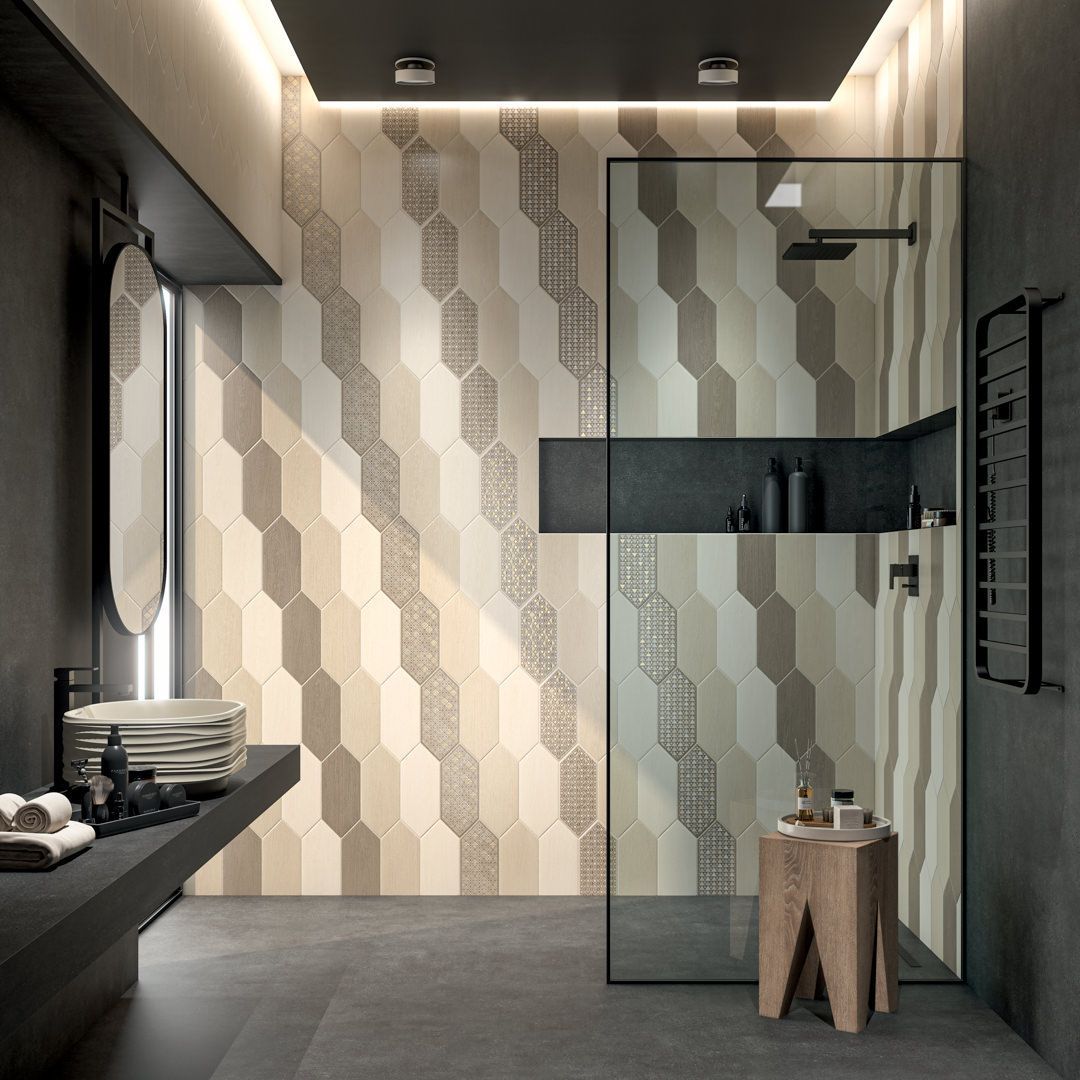 Керамическая плитка «Монтиш» из португальской коллекции КЕРАМА МАРАЦЦИ станет необычной и роскошной дизайнерской идеей в любом частном или публичном помещении. Выполненная в виде продолговатого шестиугольника в формате 14х34 см, плитка имеет матовую гладкую поверхность и представлена в пастельных светло-бежевых, бежевых и коричневых цветах. Красивым дополнением к фоновой керамике служат расписные декоры 14х34 см с нанесенным сверкающим составом и небольшая квадратная вставка 9,8×9,8 см. Дизайнеры фабрики предлагают сочетать данную серию с элементами из других коллекций: к примеру, с керамической серой или белой плиткой «Понти».