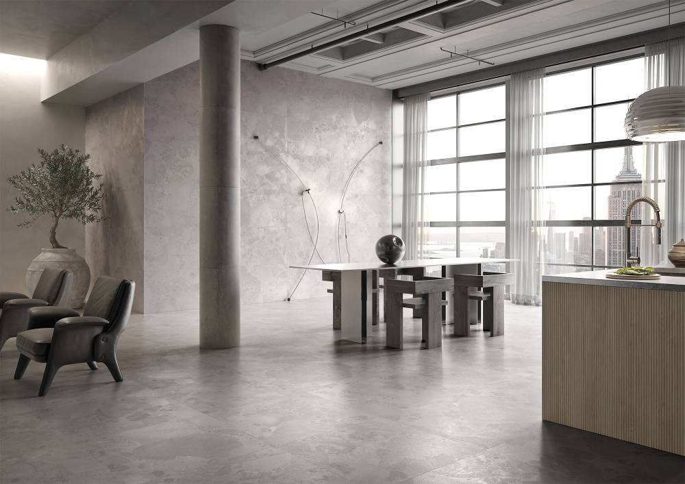 Пять оттенков – светлый, темный, теплый и холодный – обеспечивают полную палитру и доступны в форматах 30×60 см, 60×60 см, 60×120 см, 80×80 см и 120×120 см, что позволяет использовать их как на полу, так и на стенах.