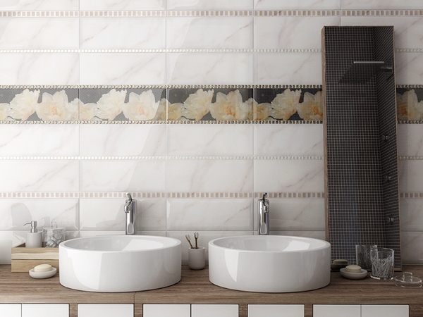 Серия плитки «Ноттингем» из английской коллекции от KERAMA MARAZZI выделяется утонченным дизайном и прекрасно подойдет для столовой комнаты. Базовая плитка выполнена под светлый «мрамор», повторяя его естественную текстуру, рисунок и оттенок. На качественных декоративных элементах изображены садовые и полевые цветы с названием каждого цветка, обрамленные золотой рамочкой. Выглядит декор как крупноформатные открытки. Законченный вид керамическому ансамблю придают красивые вставки со старинным орнаментом и бордюры.