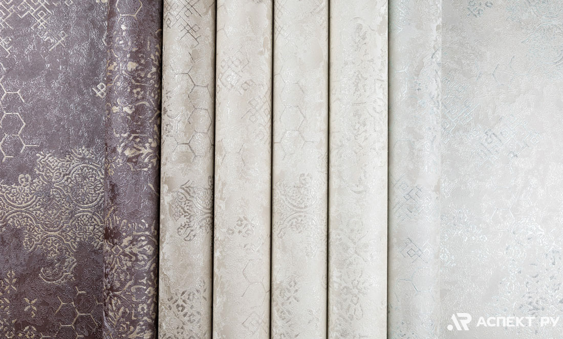 - Вид виниловых обоев горячего тиснения (шелкография)