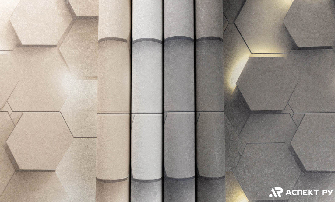 Обои флизелиновые Аспект Гексагон серые 70669-14 1,06х10,05 м