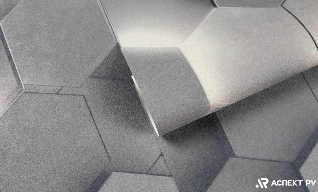 Обои флизелиновые Аспект Гексагон серые 70669-41 1,06х10,05 м