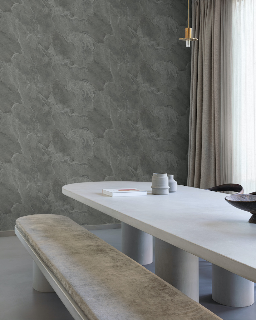 - Вид виниловых обоев горячего тиснения (шелкография)