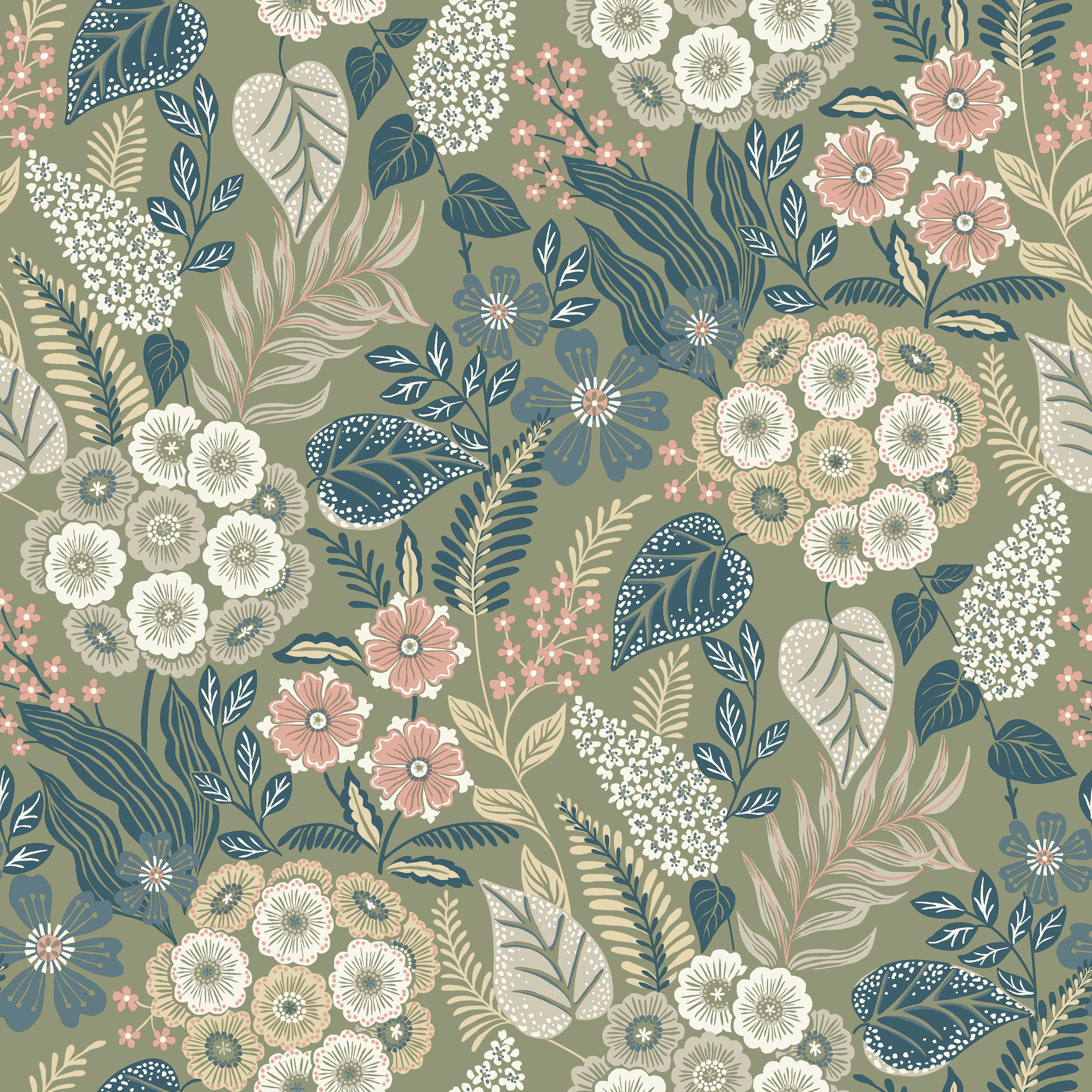 Обои флизелиновые Grandeco Karuna зеленые A 76603 0,53х10,05 м