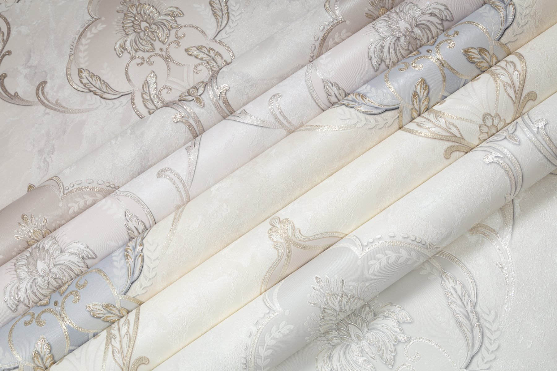 - Вид виниловых обоев горячего тиснения (шелкография)