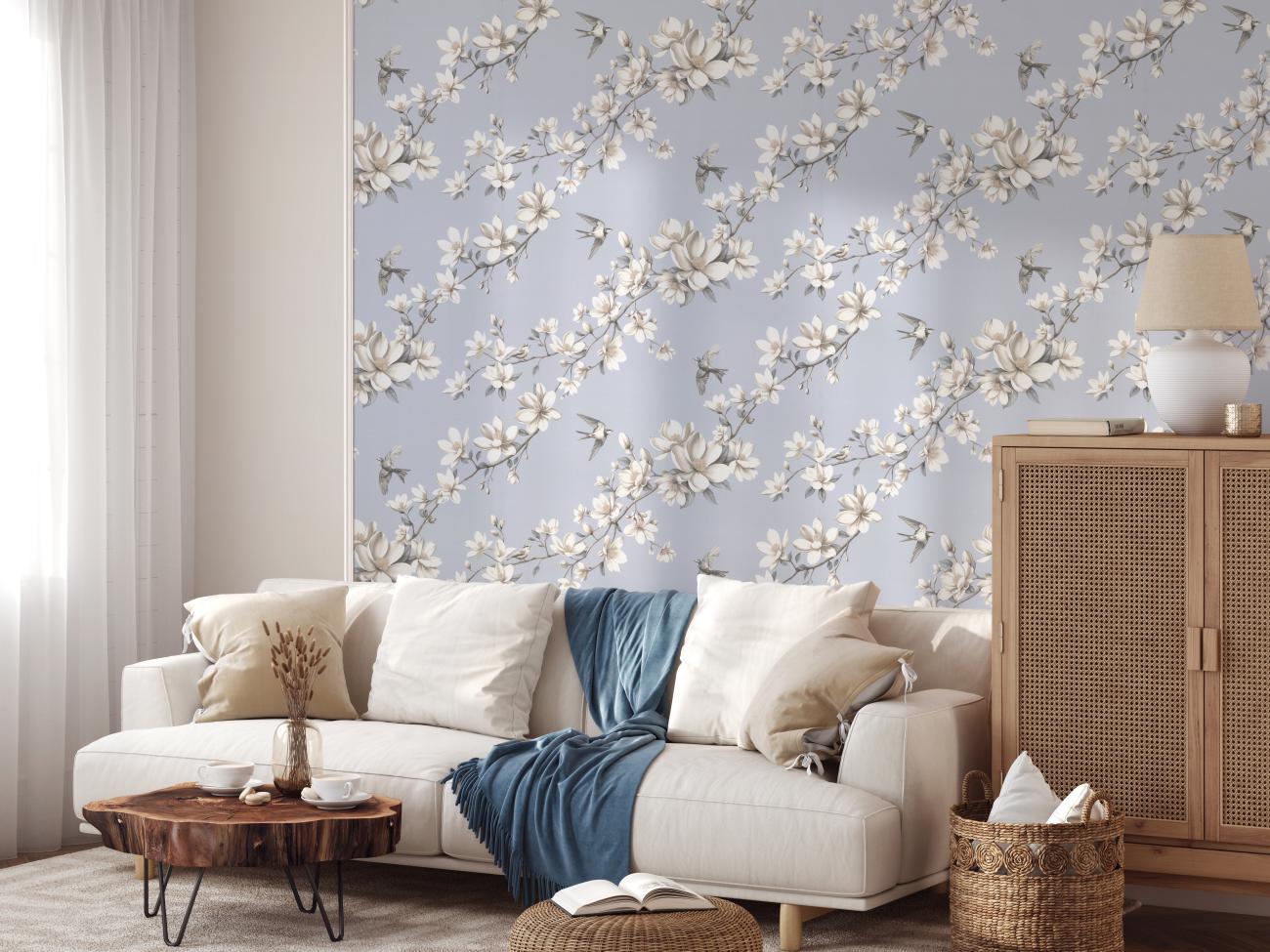 Обои флизелиновые Palitra Life Magnolia голубые PL72536-46 1,06х10,05 м