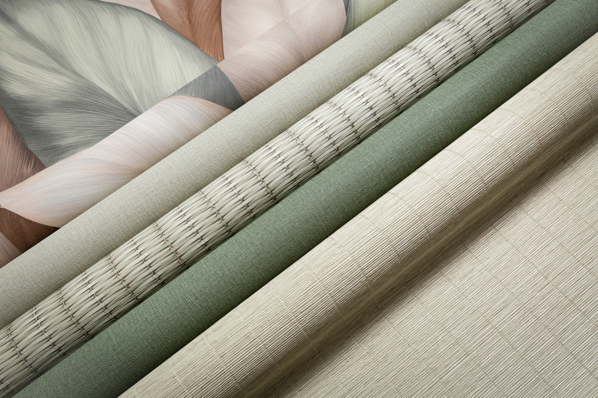 - Вид виниловых обоев горячего тиснения (шелкография)