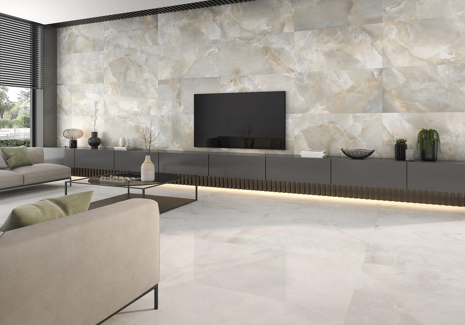 — В составе Keramikos Onice есть керамогранит, мозаика с рисунками под оникс.