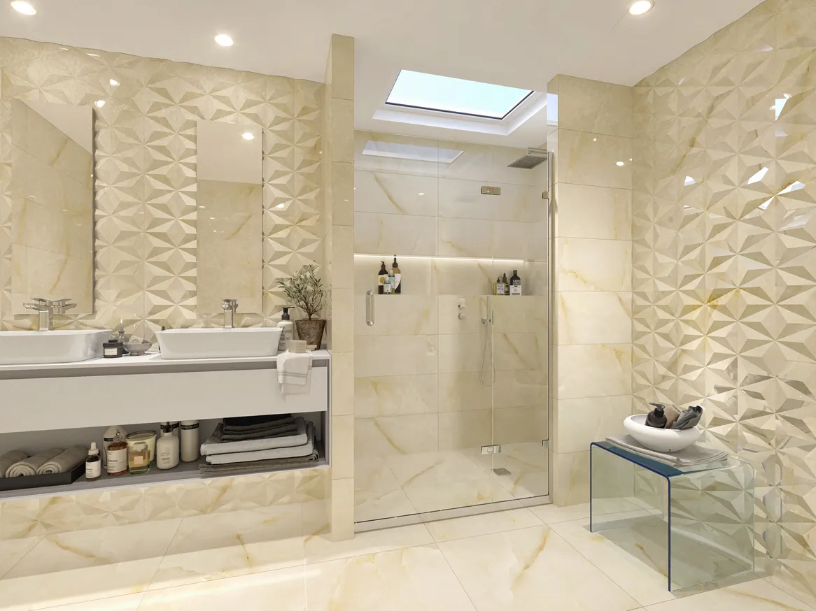 Коллекция Onyx создана быть уникальной. Изделия этой серии отличает сила, оригинальность, элегантность и уравновешенность. Дизайнеры DOGMA® как ювелир, искусно обрабатывающий драгоценные камни, воспроизвели в изделиях Onyx душу и волшебные свойства природы. Сложные сочетания прожилок, линий и разводов, различной интенсивности, подчеркнуты благодаря «яркому» глянцу. Декоративные элементы с геометрическими рельефами Triangolo, создают невероятный эффект игры цвета и тени, помогая избавиться от традиционной плоскостности настенной плитки. Использование плит Onda делают стены главным акцентом в интерьере, создавая чувственные творческие поверхности.