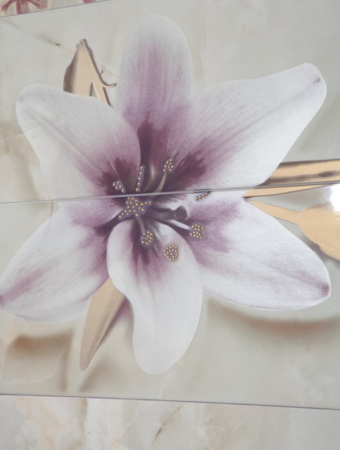 Здесь красота камня дополняется изящностью роскошных королевских линий, которые создают особую атмосферу уюта и тепла. Коллекция дополнена напольной керамикой, которая представляет целую композицию, собирающуюся из четырех плиток.