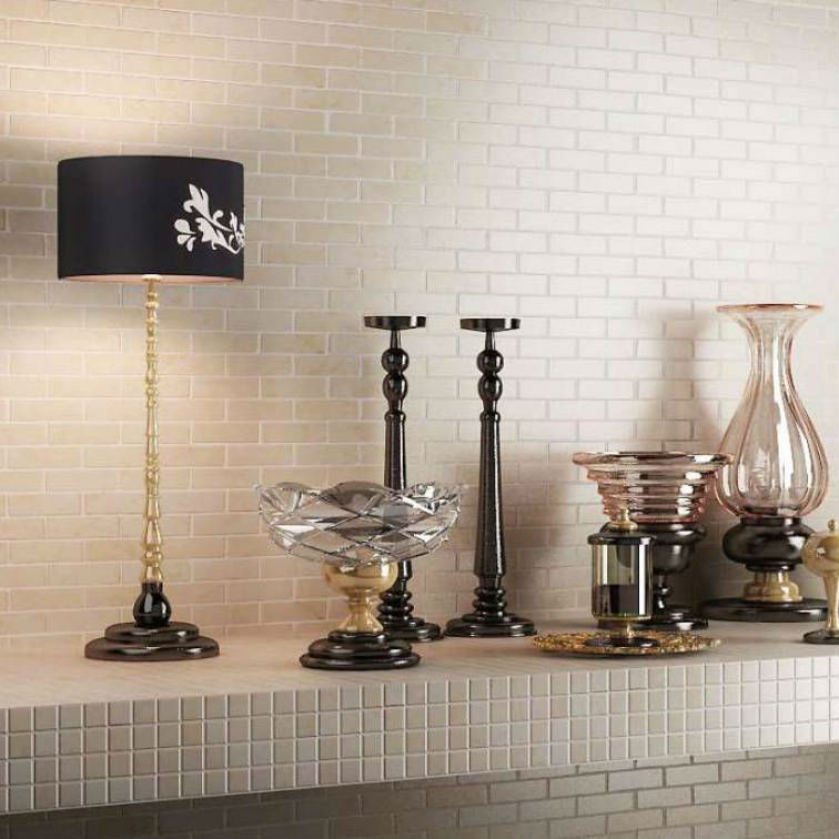В составе Pietrine есть мозаика, мозаика с рисунками под камень, кирпич. Коллекция, а также её отдельные элементы подходят для ванной, для душа. Все размеры: 298x298, 305x305.