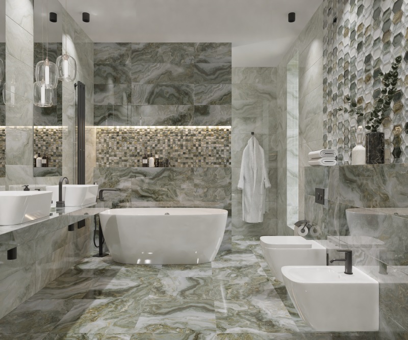 Плитка настенная Primavera Hypnose Malachite Decor 04 glossy глянцевая зеленая DG17-04 90х30 см