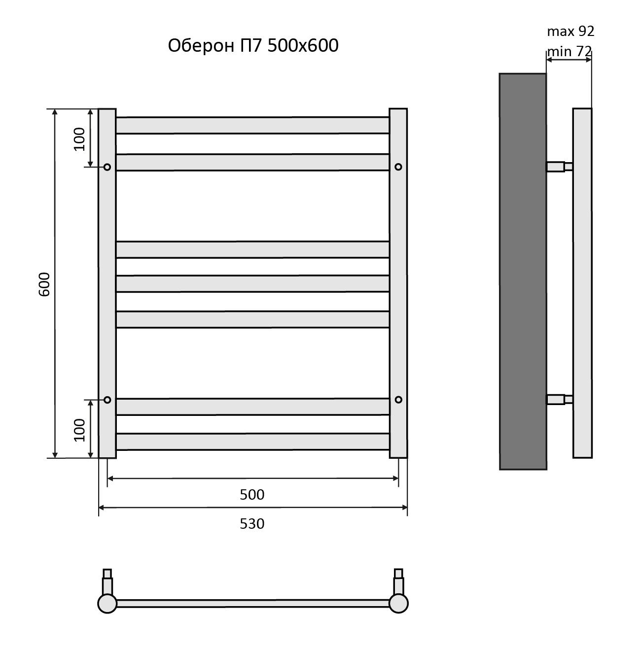 - Размер полотенцесушителя 53х60 см