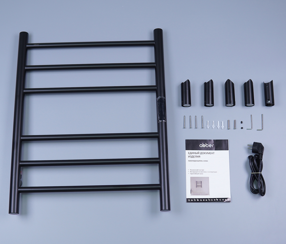 Элегантный электрический полотенцесушитель Abber Standard AH4606MB в черном матовом исполнении - оптимальное сочетание классического дизайна и современных технологий. Модель станет функциональным элементом ванной комнаты, обеспечивая комфортную сушку текстиля и поддержание благоприятного микроклимата. Ключевые преимущества полотенцесушителя электрического черного матового: Стильный дизайн. Матовое чёрное порошковое покрытие создаёт эффектный визуальный акцент и легко сочетается с современной сантехникой и отделкой. Универсальная совместимость. Классический дизайн органично вписывается в интерьеры разных стилей - от современного до традиционного. Безопасность эксплуатации. Степень защиты IPX4 гарантирует надёжную работу в условиях повышенной влажности. Энергоэффективность. Встроенный терморегулятор с таймером (1-8 часов) позволяет поддерживать заданную температуру, экономя электроэнергию. Долговечность. Корпус из нержавеющей стали устойчив к коррозии, механическим повреждениям и потере блеска. Быстрый нагрев. Эффективная система теплообмена обеспечивает оперативную сушку полотенец и текстиля. Рекомендации по установке полотенцесушителя Abber Для надёжной и безопасной эксплуатации рекомендуется доверить монтаж квалифицированному специалисту. Прибор должен быть подключён к электросети с заземлением. Выберите надёжность и стиль - электрический полотенцесушитель Abber Standard AH4606MB станет практичным и эстетичным решением для вашей ванной комнаты