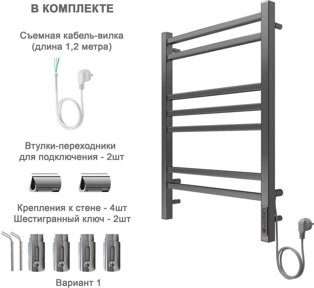 Простота установки и полная комплектация, изделие готово к установке — все необходимое для монтажа уже в комплекте. Для монтажа не потребуется профессиональная помощь или использование сложных инструментов. Достаточно закрепить полотенцесушитель на стене в непосредственной близости от розетки. Габарит выступа от стены регулируется телескопическими крепежами