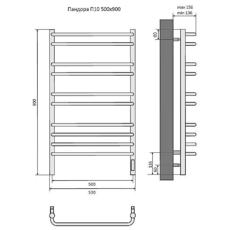 - Размер полотенцесушителя 53х90 см