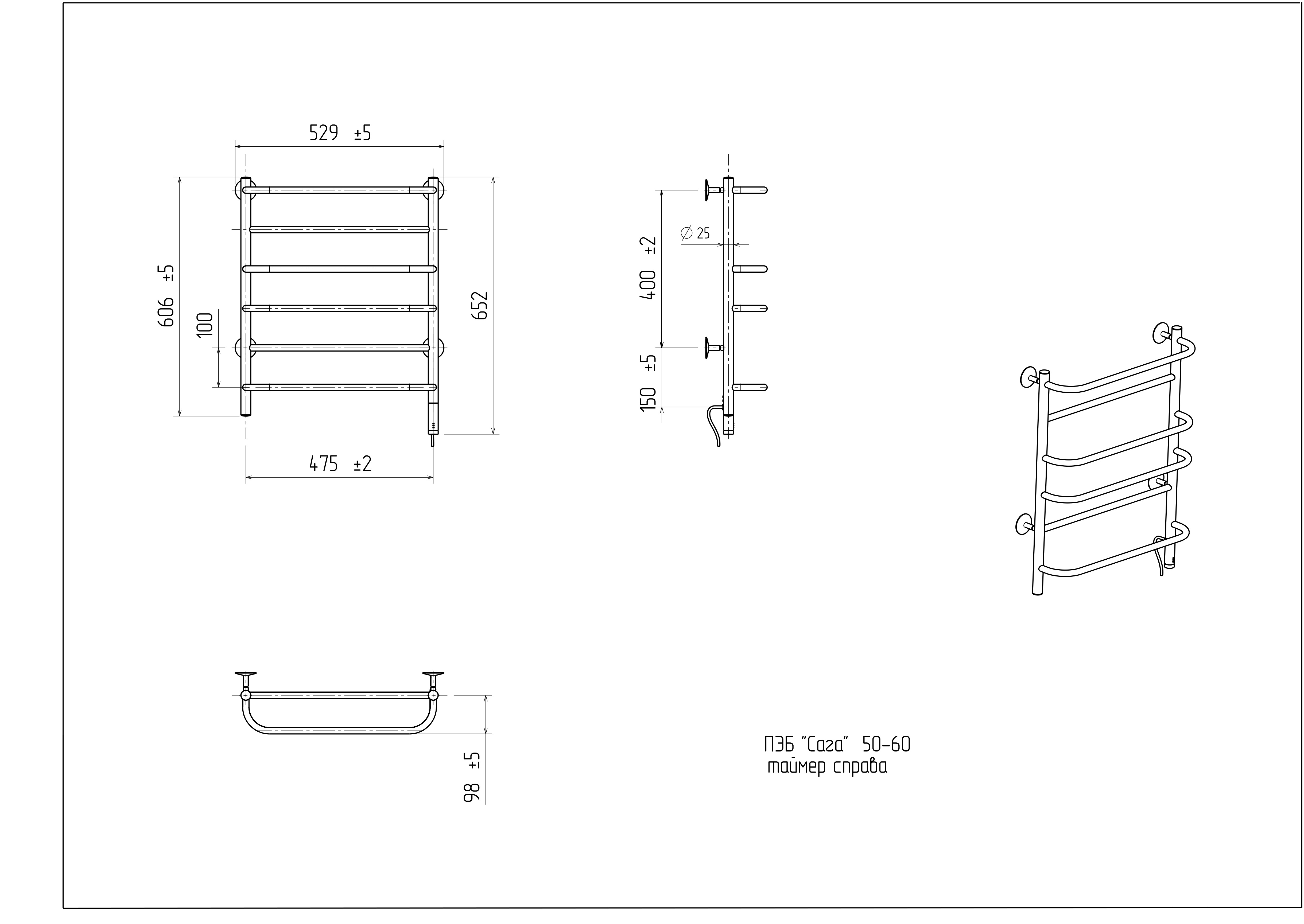 Настенный способ установки позволяет удобно разместить его в пространстве, а отсутствие встроенного терморегулятора делает его простым в использовании. С максимальной рабочей температурой в 55 °C, этот полотенцесушитель эффективно справляется с задачей сушки полотенец и поддержания тепла, создавая комфортную атмосферу в вашем доме.
