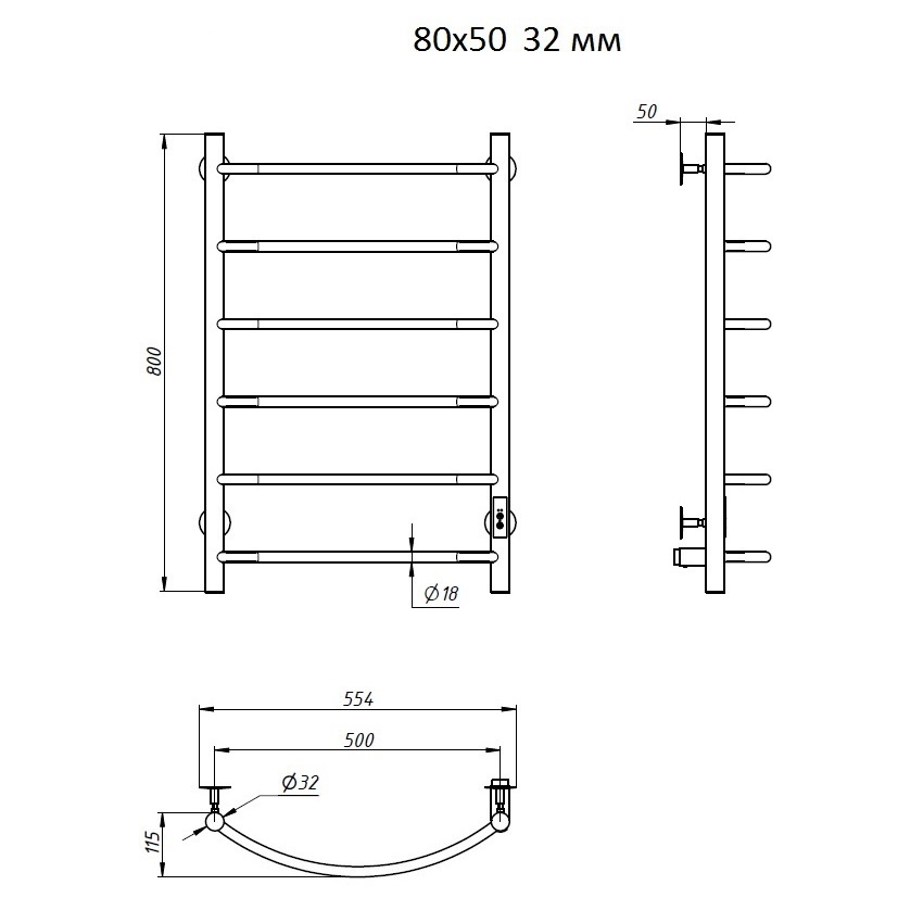 Полотенцесушитель электрический Aringa Берген AR03049GS 80х50 см
