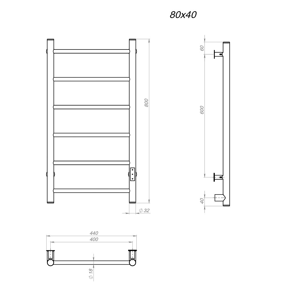 Полотенцесушитель электрический Aringa Честер AR03044GS 80х40 см
