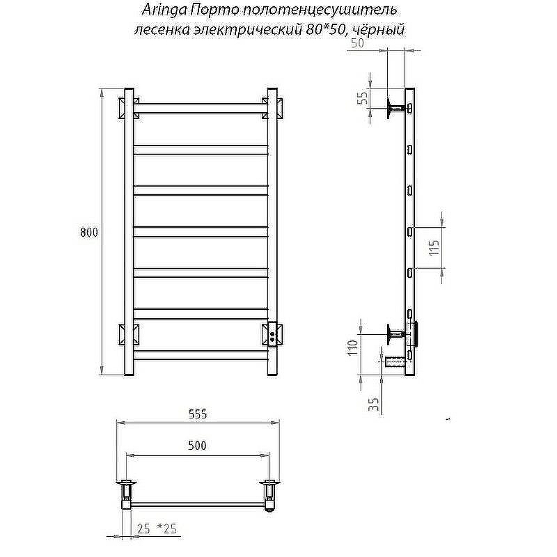 Полотенцесушитель электрический Aringa Порто AR03012BL 80х50 см