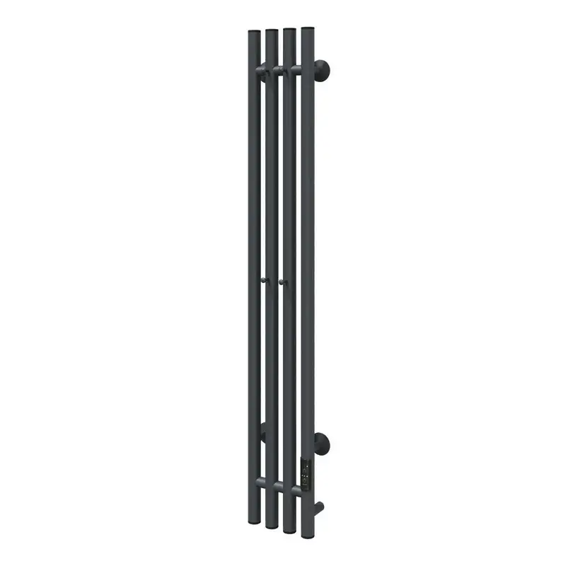 Aringa Токио полотенцесушитель вертикальный электрический 120*15, графит Полотенцесушитель электрический Aringa - идеальное дополнение к интерьеру вашей ванной комнаты. Электрический полотенцесушитель изготовлен из высококачественной стали. Подключение полотенцесушителя - универсальное ( скрытое электрическое подключение; электропровод с вилкой). Полотенцесушитель оснащен таймером на 2,4,6 часов работы и терморегулятором, встроенным в коллектор. В комплекте: - комплект скрытого подключения - нагревательный кабель - выключатель с таймером и терморегулятором - шнур электропитания с вилкой - телескопический держатель - 4 шт.