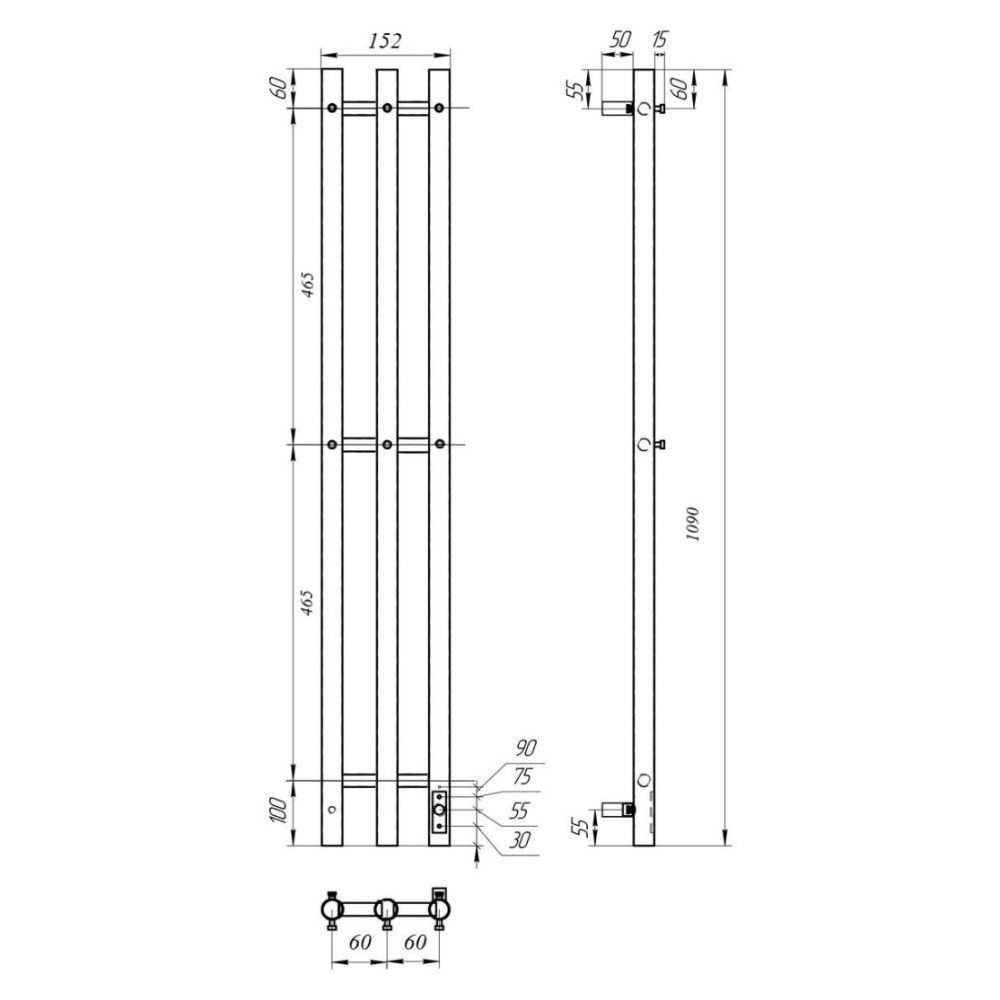 - Размер полотенцесушителя 15,2х109 см