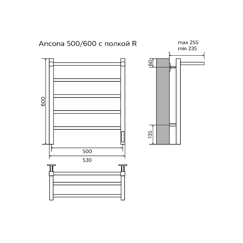 - Размер полотенцесушителя 53х60 см