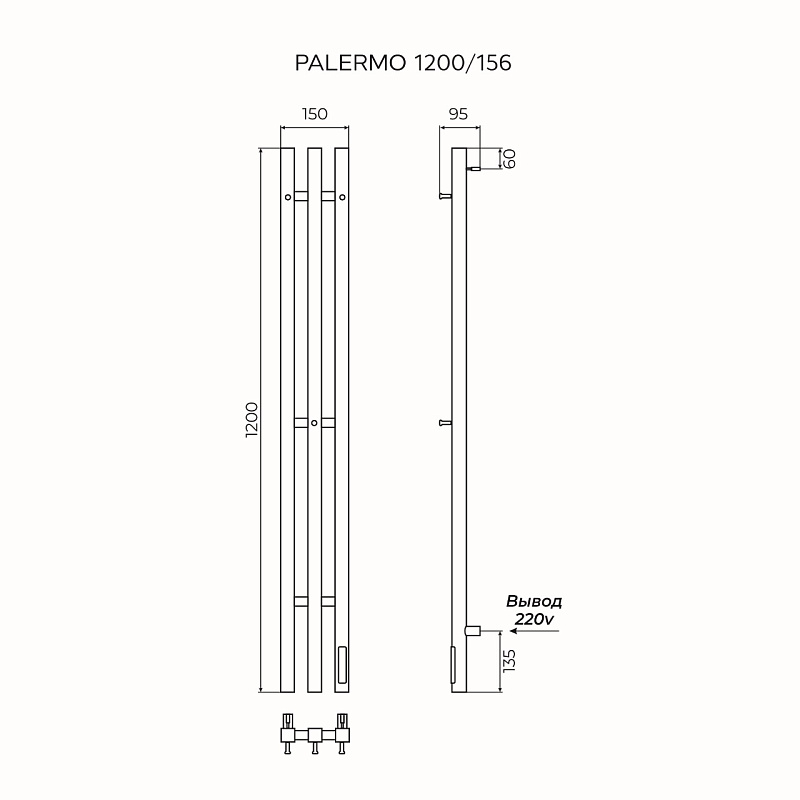 Полотенцесушитель электрический Azario Palermo AZ83856G 15,6х120 см