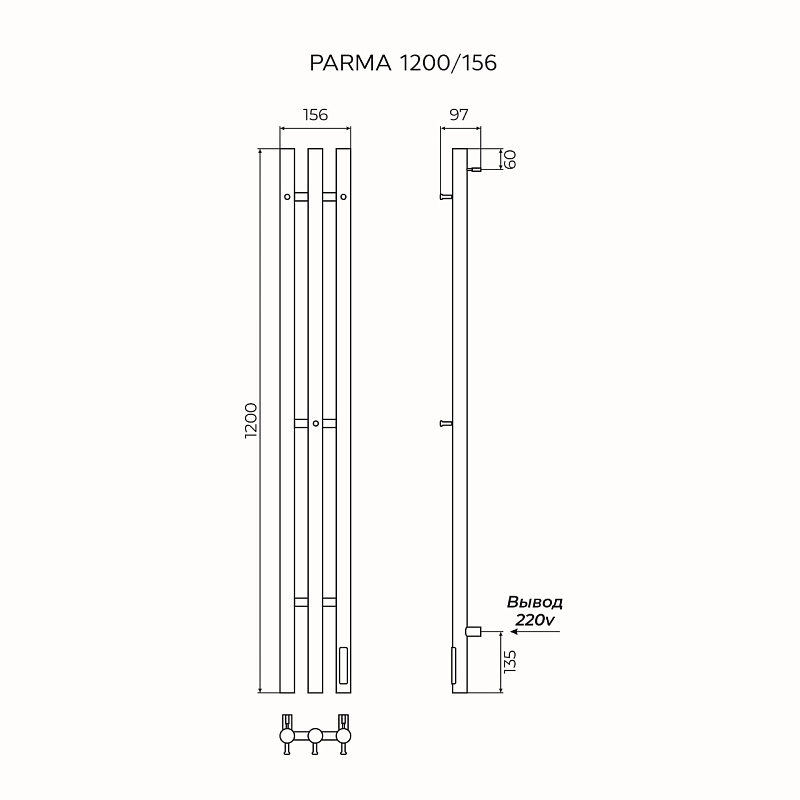 Полотенцесушитель электрический Azario Parma AZ83861B 120х15,6 см