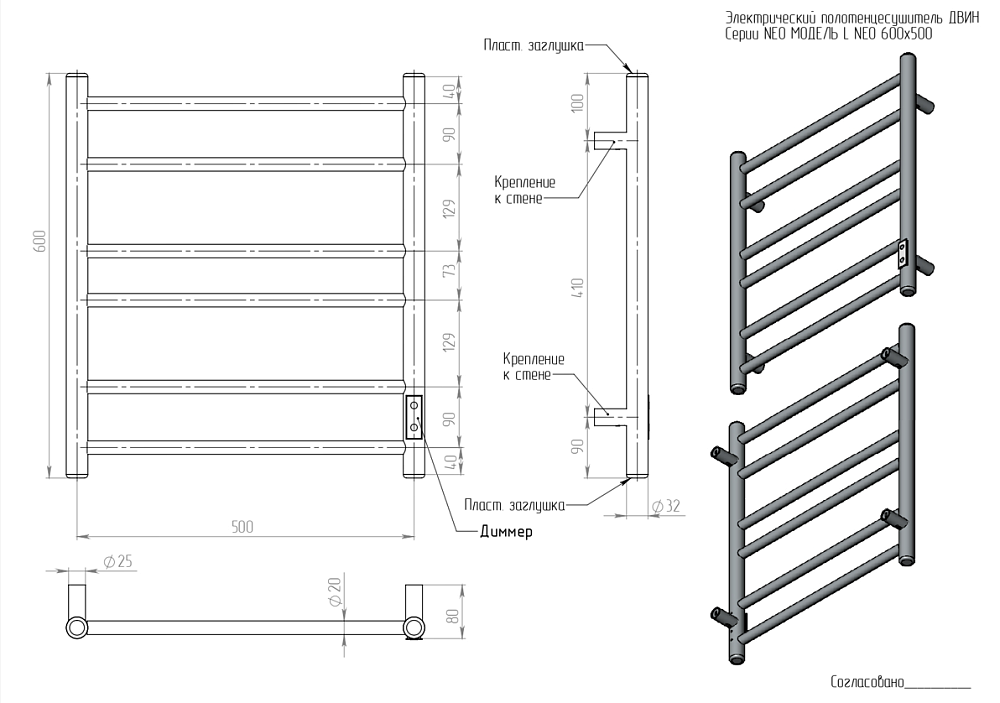 Полотенцесушитель электрический Двин L Neo 4656759179137 60х50 см