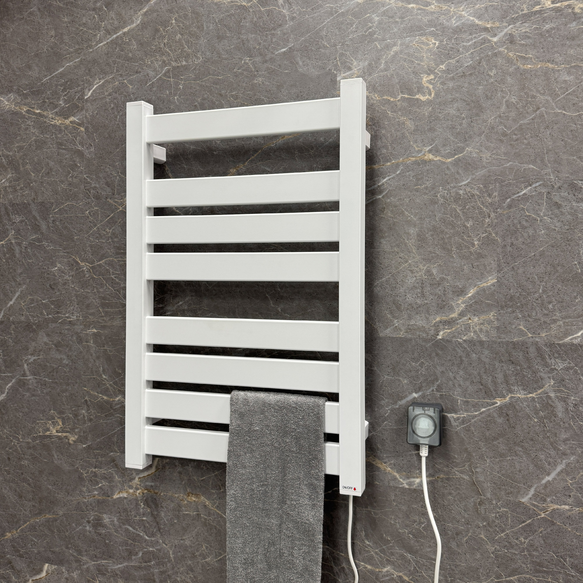Эффективность обогрева: 210 Вт мощности достаточно для быстрого нагрева поверхности до комфортной температуры +55 °C, обеспечивая уют и сухость полотенец круглый год. Длина шнура составляет 1,5 метра, что позволяет удобно разместить устройство рядом с розеткой. Высокая степень защиты IP55 - надежная работа даже в условиях повышенной влажности. Быстрый нагрев - всего 30 минут до оптимальной температуры. Преимущества модели FIXSEN FX-7500W: Быстрый обогрев помещения и поддержание оптимальной температуры воздуха в ванной комнате.