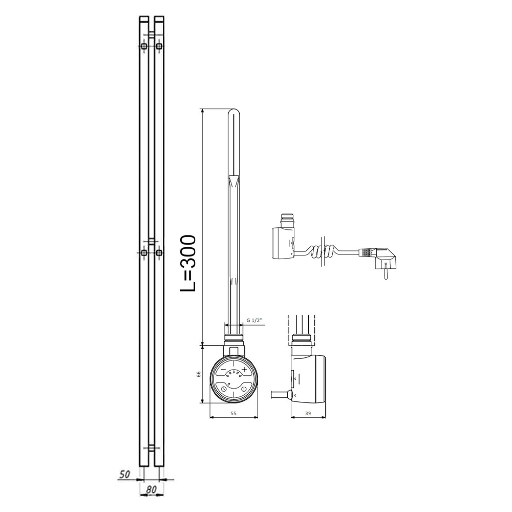 Оснащение : Полотенцесушитель, терморегулятор, комплект креплений.
