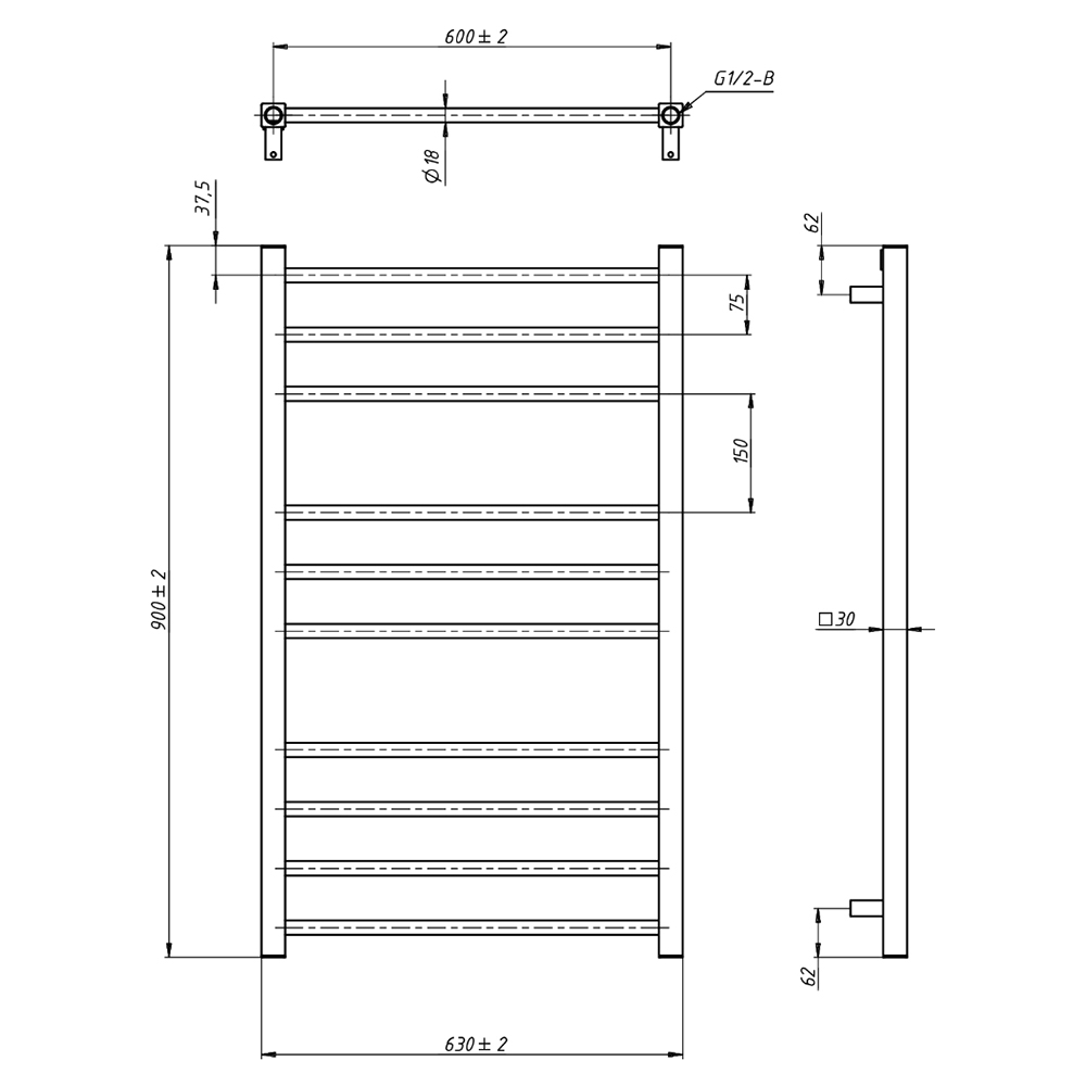 - Размер полотенцесушителя 63х90 см